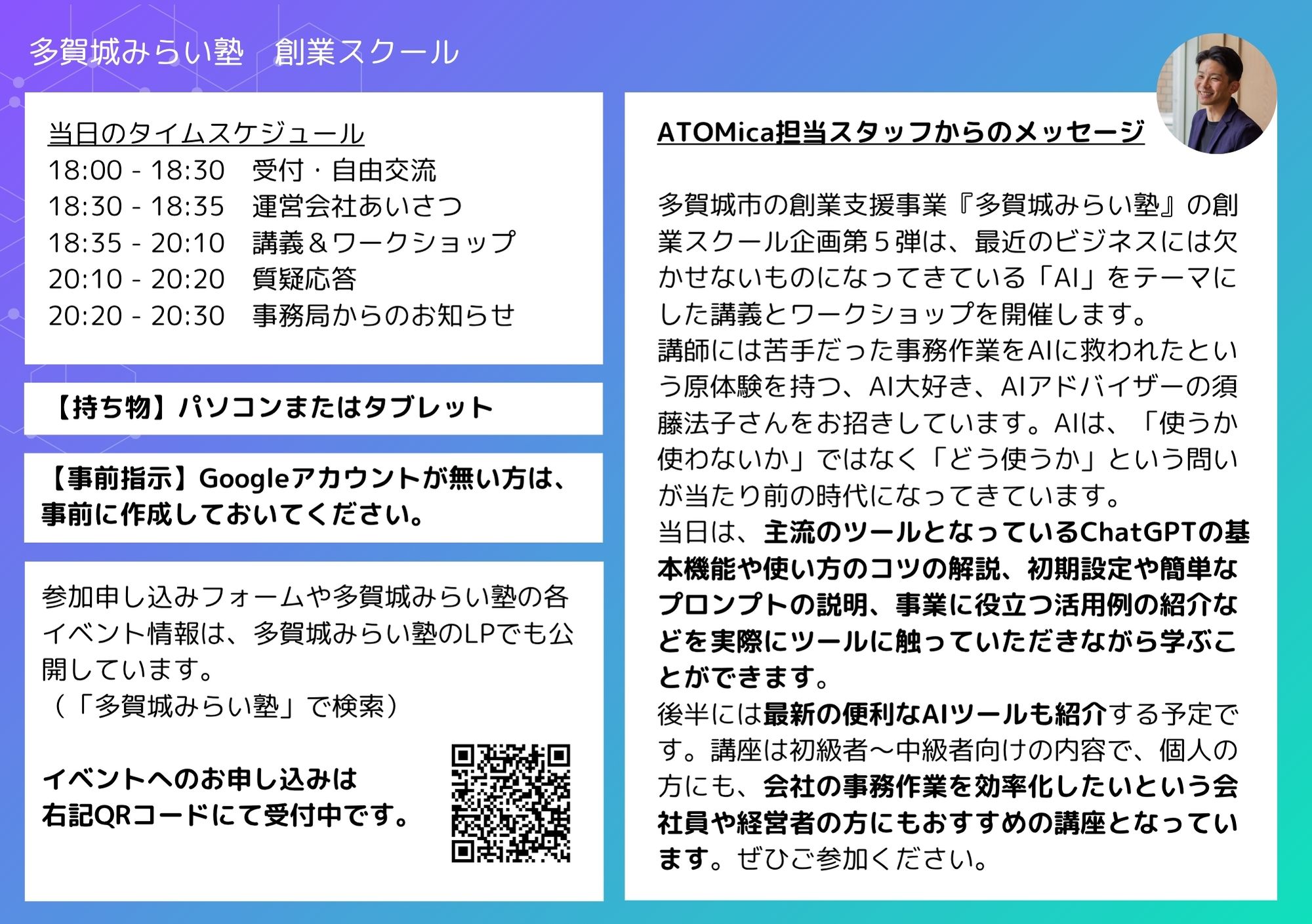 ※同日18:30~20:30にて創業スクール企画「ATOMicaの事例に